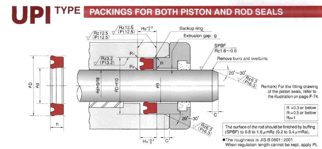 UPI型孔軸兩用密封主要材料是邵爾94度聚氨酯,壓力可達到35MPA,溫度:-30度---+100度,有極好的耐磨性和密封能力。他有較大的截面,可用于大范圍的操作。